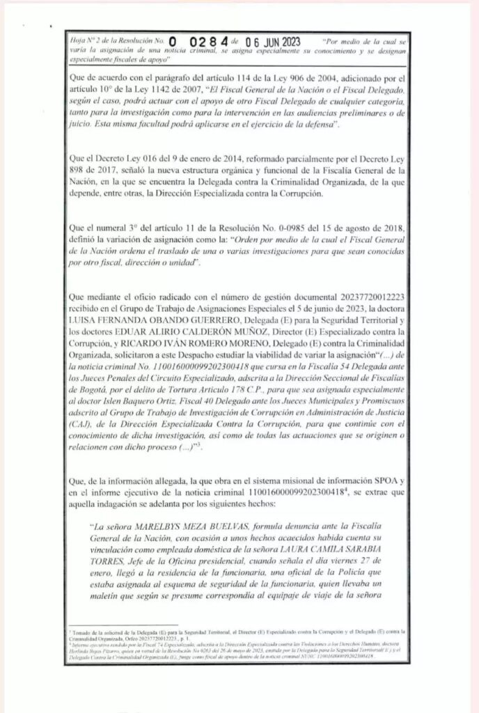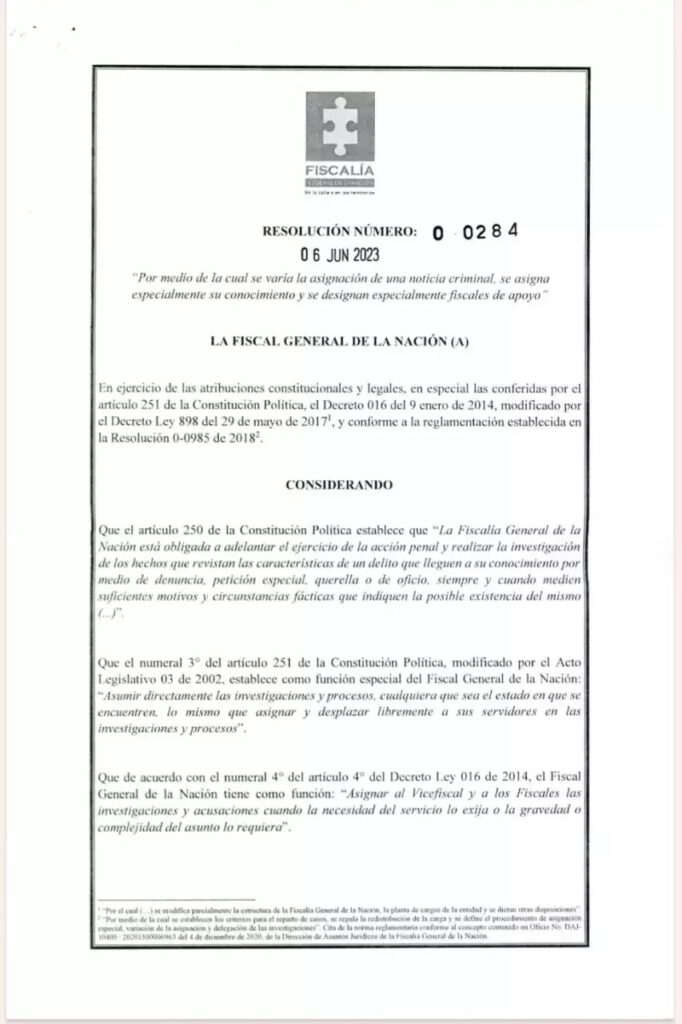 “Comunicar la presente decisión a la delegada para la Seguridad Territorial, a la delegada contra la Criminalidad Organizada, a la Dirección Seccional Bogotá y a la Dirección Especializada contra la Corrupción”, se lee en el documento.