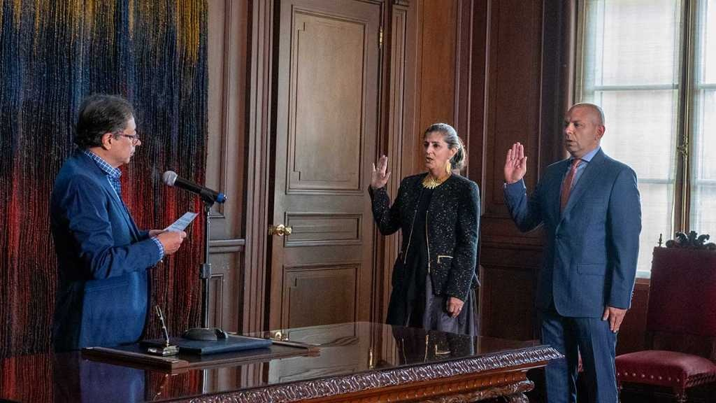 El Presidente Gustavo Petro posesionó este martes en el Salón Protocolario de la Casa de Nariño a Laura Gil y Alejandro Peláez, como nuevos embajadores de Colombia ante la República de Austria y Corea, respectivamente.